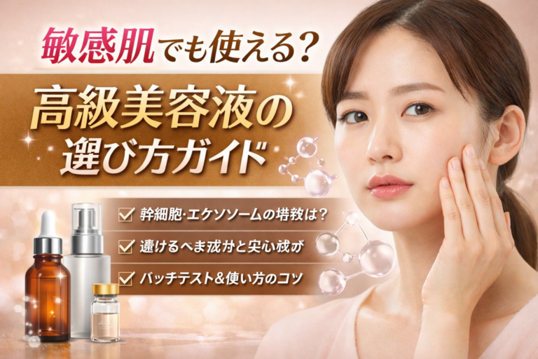 敏感肌だけれど、高級美容液を試してみたい。幹細胞培養液やエクソソームといった再生美容系のアイテムが気になるが、刺激が出たらどうしようという不安がある。以前、ビタミンCやレチノールで赤みやかゆみが出た経験があり、また同じ失敗を繰り返すのが怖い。高価格だからこそ、失敗したくない。でも、何を基準に選べばいいのか分からない。 敏感肌向けと謳われている製品は多いが、本当に自分の肌に合うのか、どの成分が刺激に […]
