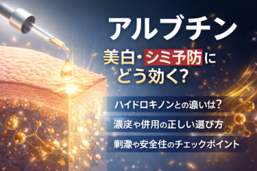 シミを増やしたくない、でも強い成分は不安という方へ 「シミが気になり始めたけれど、ハイドロキノンは刺激が強そうで踏み切れない」「アルブチンが安全と聞いたが、本当に効くのか半信半疑だ」「濃度は何パーセントを選べばいいのか、よく分からないまま使っている」——こういった声は、スキンケアの相談の中で繰り返し出てくるものだ。 美白成分に関心を持ちながら、選択肢が多すぎて逆に動けなくなっている方は多い。アルブ […]