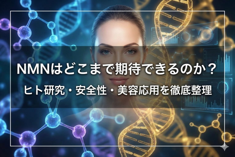 NMN最新研究まとめ|ミトコンドリア・NAD+・美容への影響をわかりやすく解説 はじめに――NMNって結局何?期待と不安の両方を整理する 「NMNで若返る」「長寿遺伝子が活性化する」「15分で全身に届く」。こうした言葉を目にして、期待と不安の両方を感じた人は多いのではないでしょうか。美容の現場でも、お客様から「NMNのサプリを飲んでいるけど、本当に効果があるの?」「化粧品にNMNが入っているけど、 […]