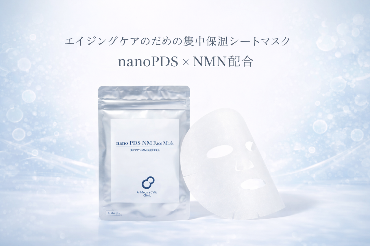 そこで注目されているのが、ナノ技術と最先端の美容成分を組み合わせたフェイスマスクです。今回紹介するnanoPDS NMN フェイスマスクは、Ai Medical Clinicの幹細胞療法・免疫療法の知見を活かし、幹細胞培養液、話題のNMN、そして独自のnanoPDS浸透技術を融合させた、週1回のスペシャルケア用マスクです。