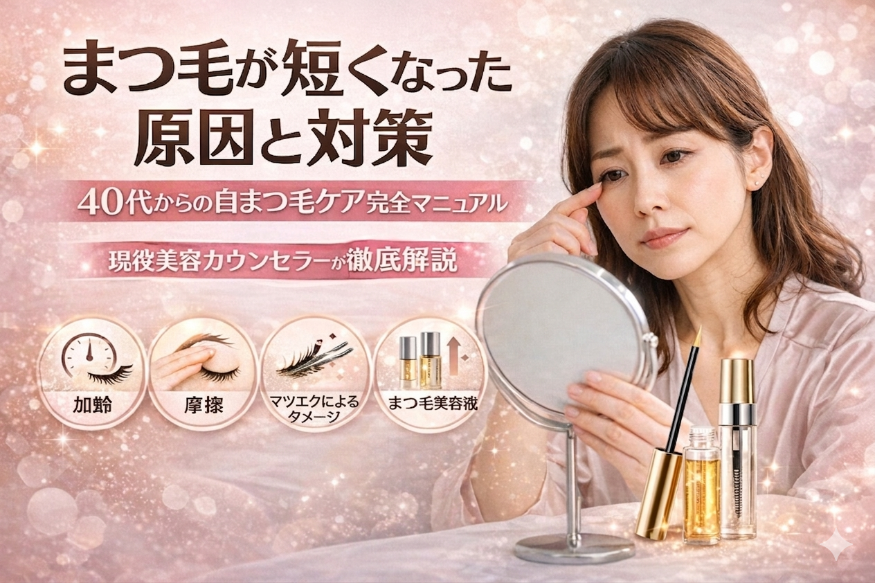 しかし、まつ毛が短くなる原因は加齢だけではありません。日常の何気ない習慣や間違ったケアが、知らないうちにまつ毛を傷めている可能性があります。私はこれまで美容カウンセラーとして数百人以上のお客様のまつ毛の悩みに向き合ってきましたが、原因を正しく理解して対策を変えただけで、自まつ毛の状態が明らかに改善したケースを何度も見てきました。